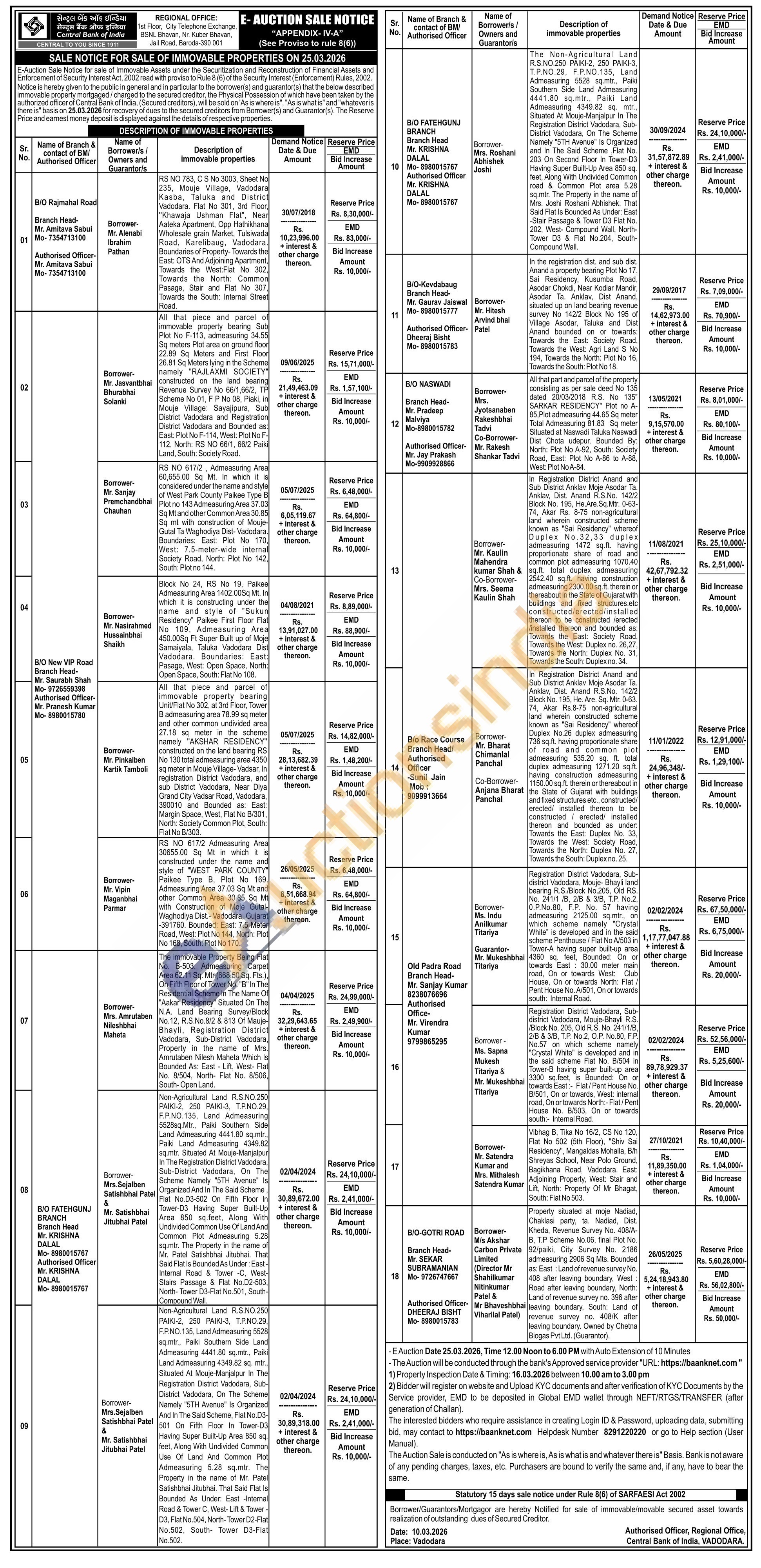 Contact Authorised Officer -Sunil Jain Mob: 9099913664