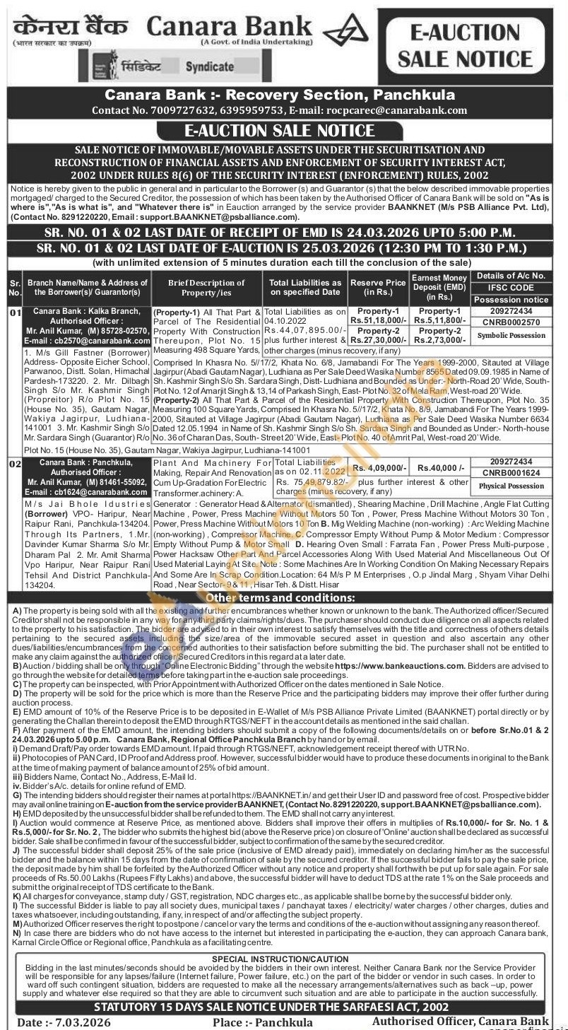 Generator: Generator Head & Alternator (dismantled), Shearing Machine, Drill Machine, Angle Flat Cutting Machine, Power, Press Machine Without Motors 50 Ton, Power, Press Machine Without Motors 30 Ton, . Power, Press Machine Without Motors 10 Ton B. Mig Welding Machine (non-working): Arc Welding Machine 1. (non-working), Compressor Machine. C. Compressor Empty Without Pump & Motor Medium: Compressor Empty Without Pump & Motor Small D. Hearing Oven Small: Farrata Fan, Power Press Multi-purpose, Power Hacksaw Other Part And Parcel Accessories Along With Used Material And Miscellaneous Out Of Used Material Laying At Site. Note: Some Machines Are In Working Condition On Making Necessary Repairs -And Some Are In Scrap Condition.Location: 64 M/s PM Enterprises, O.p Jindal Marg, Shyam Vihar Delhi Road, Near Sector-9&11, Hisar Teh. & Distt. Hisar