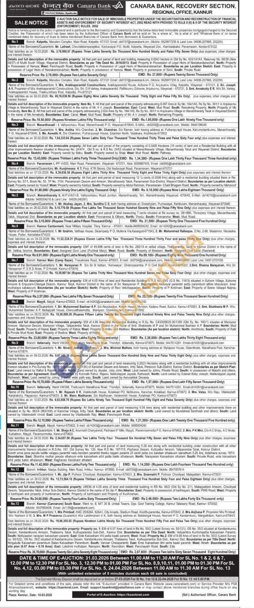 Contact Branch: Kalpetta, (Mobile: 9629977235 & Land Line: 04936-207888, 202255