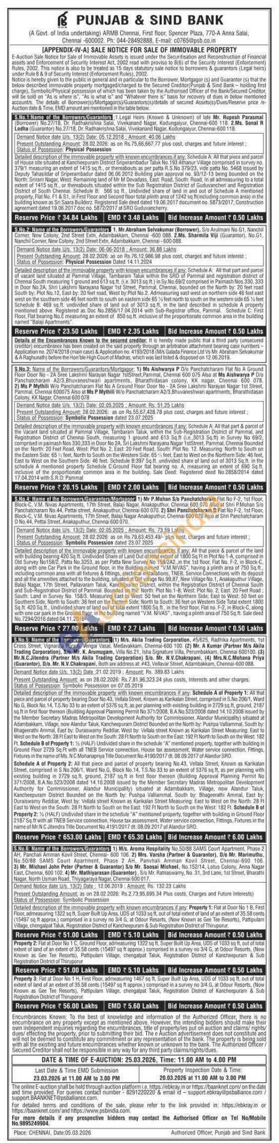 Property 2: Flat at Door No 1 C, Ground Floor, admeasuring 1322 sq ft. Super Built Up Area, UDS of 1033 sq ft, out of total extent of land of an extent of 35.58 cents (15497 sq ft approx.) comprised in a survey no 3/4 G, at Odour Resorts, (Now Known as Gee Tee Resorts), Pattipulam Village, chengalpat Taluk, Registration District of Kancheepuram & Sub Registration District of Thiruporur