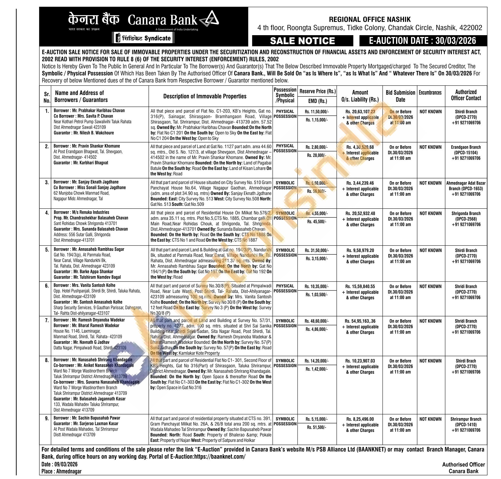 All that part and parcel of residential property situated at CTS no. 391, Gram Panchayat Milkat No. 26A, & 26/B total area 200 sq. mtrs. at Wadala Mahadeo Tal Shrirampur Owned By: Sachin Bapusaheb Pawar Bounded: North: Road South: Property of Bhalerao & Pokale East: Property of Najan West: Property of Satpure and Holkar