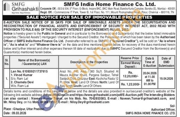 Arazi No. 140, Area 1360 Sq.ft. Situated At Mauza Audihar Khurd, Pargana Saidpur, Tehsil Saidpur, Distt. Ghazipur East: Kachcha Rasta 12 Ft. Wide West: Land Of Others North: Land Of Ajay Singh South: Land Of Others