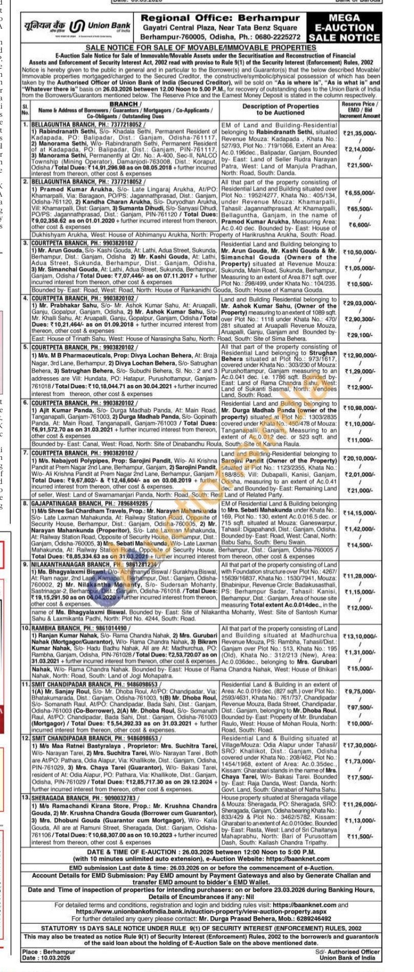 EM of Residential Land & Building belonging to Mrs. Sebati Mahakunda under Khata No.: 169, Plot No.: 130, extent Ac.0.016.5 dec. or 715 sqft. situated at Mouza: Ganeswarpur, Tahasil: Digapahandi, Dist.: Ganjam, Odisha. Bounded by-East: Road, West: Canal, North: Babu Sahu, South: Benu Swain.
