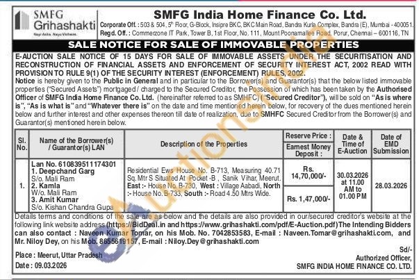 Residential Ews House No. B-713, Measuring 40.71 Sq. Mtr S Situated At Pocket-B, Sanik Vihar, Meerut. East: House No. B-730, West: Village Aabadi, North :-House No. B-733, South-Road 4.50 Mtrs Wide