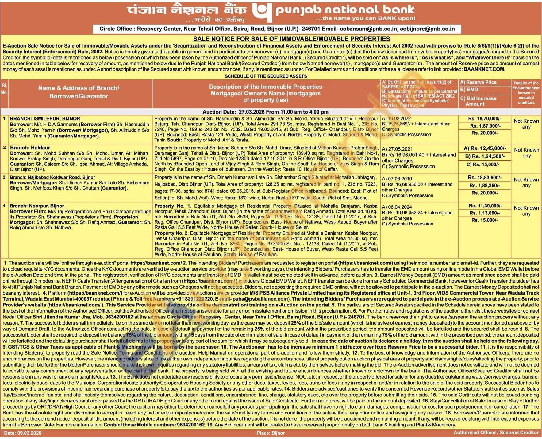 Property is in the name of Sh. Dinesh Kumar s/o Late Sh. Bishambar Singh Situated at Mohallah Jabtaganj, Najibabad, Distt Bijnor (UP). Total Area of property: 128.25 sq mt. registered in bahi no. 1, Zild no. 7223, pages: 17-36, serial no: 8741 dated 08.06.2015, at Sub-Register Office Najibabad. Bounded: East: Plot of Seller (i.e. Sh. Mohd. Asif), West: Rasta 18'0" wide, North: Rasta 16'0" wide, South: Plot of Smt. Meenu
