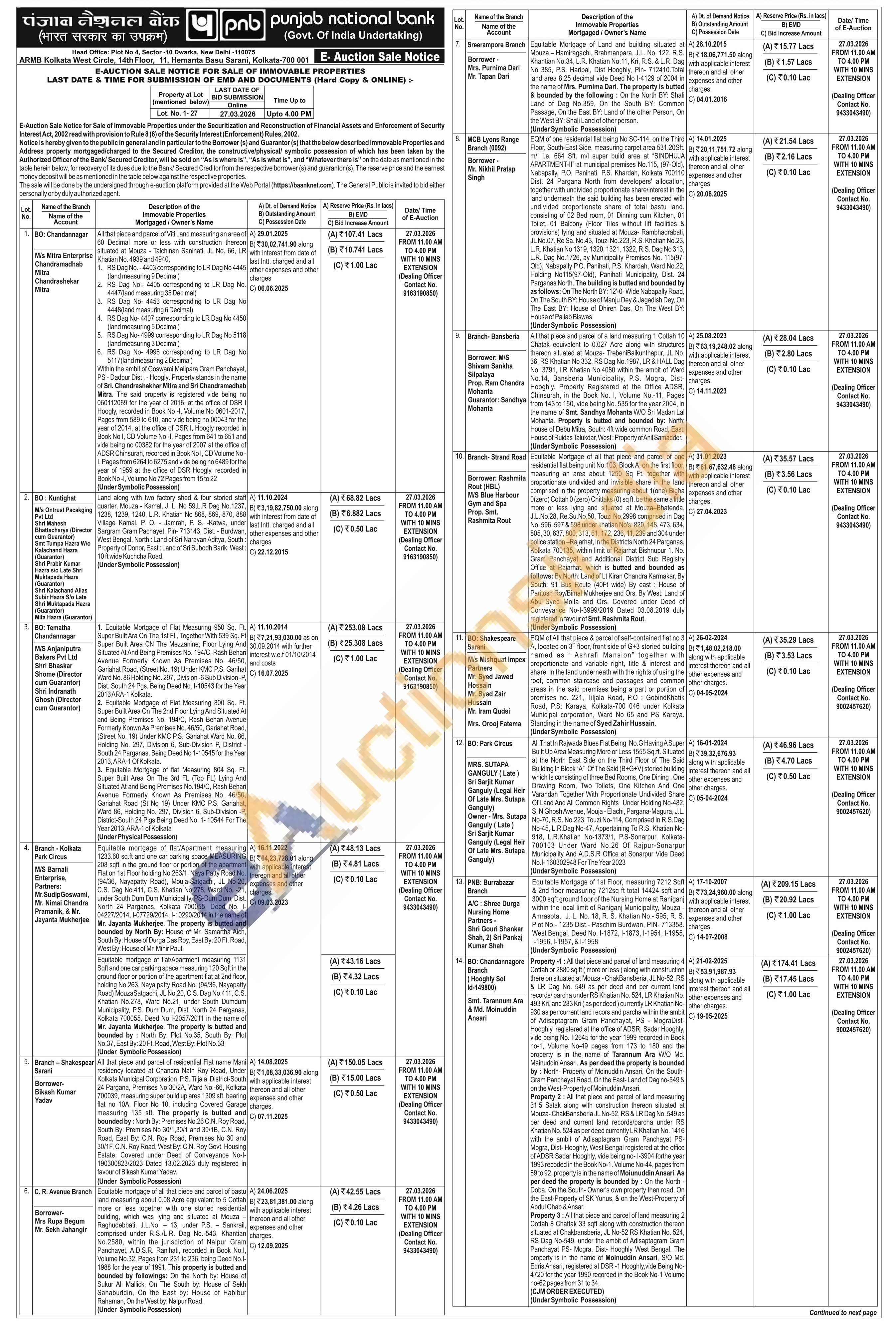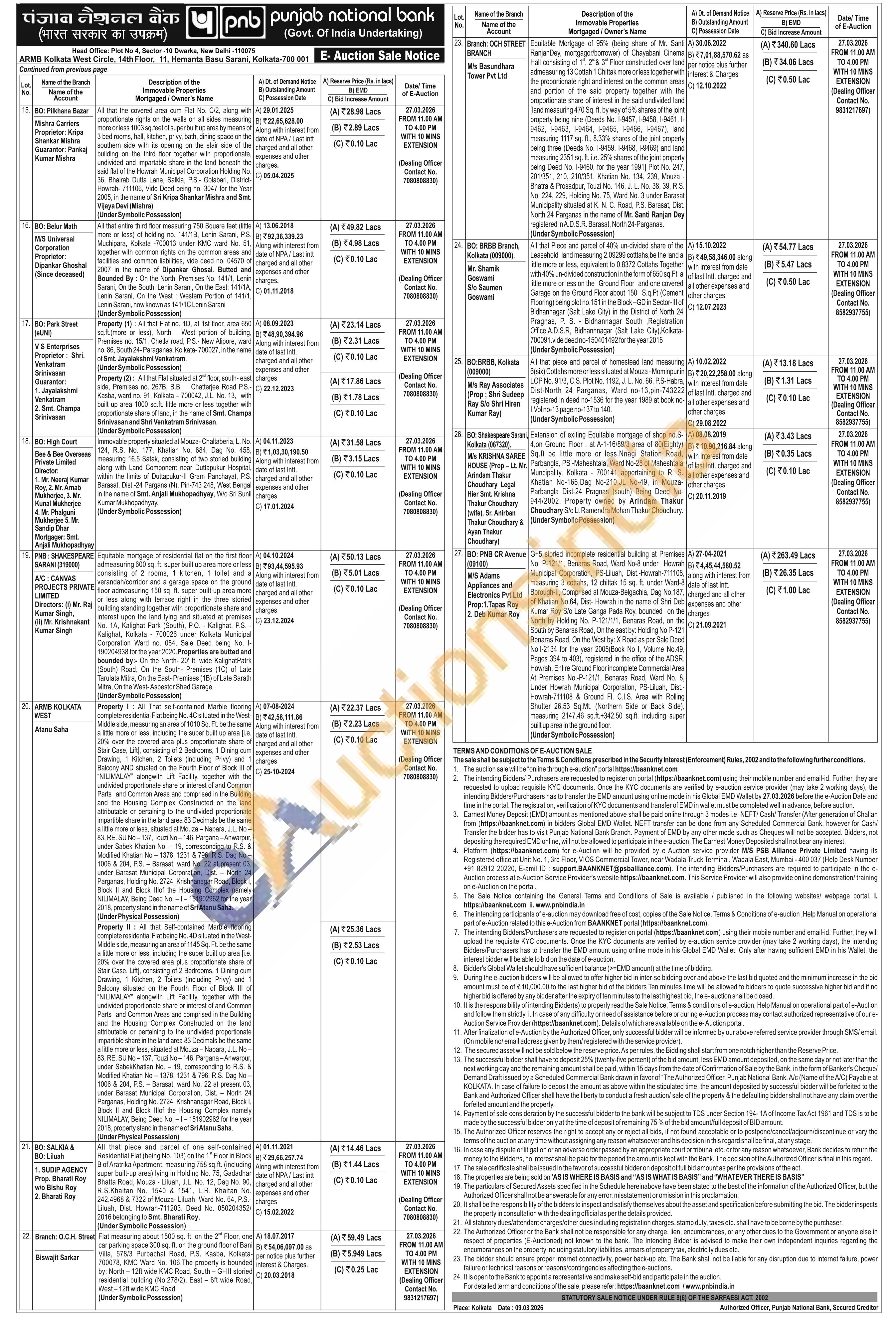 EQM of All that piece & parcel of self-contained flat no 3 A, located on 3rd floor, front side of G+3 storied building named as Ashrafi Mansion" together with proportionate and variable right, title & interest and share in the land underneath with the rights of using the roof, common staircase and passages and common areas in the said premises being a part or portion of premises no. 221, Tiljala Road, P.O: Gobind Khatik Road, P.S: Karaya, Kolkata-700 046 under Kolkata Municipal corporation, Ward No 65 and PS Karaya. Standing in the name of Syed Zahir Hussain. (Under Symbolic Possession)