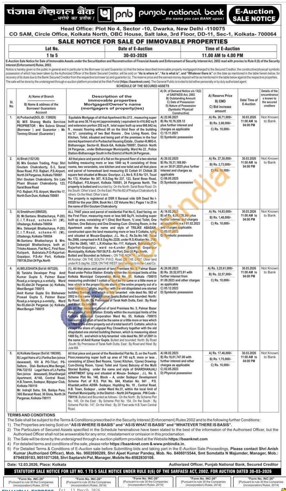Shri Anish Kumar (Authorized Officer)Mobile No : 9002690289 / Shri Ajeet Kumar Pandey Mobile No : 8406015544 / Smt Somdatta N Majumder Manager Mobile No : 8794939183 / 9051071268 / Shri Saptarshi Pal Manager Mobile No-8582830108