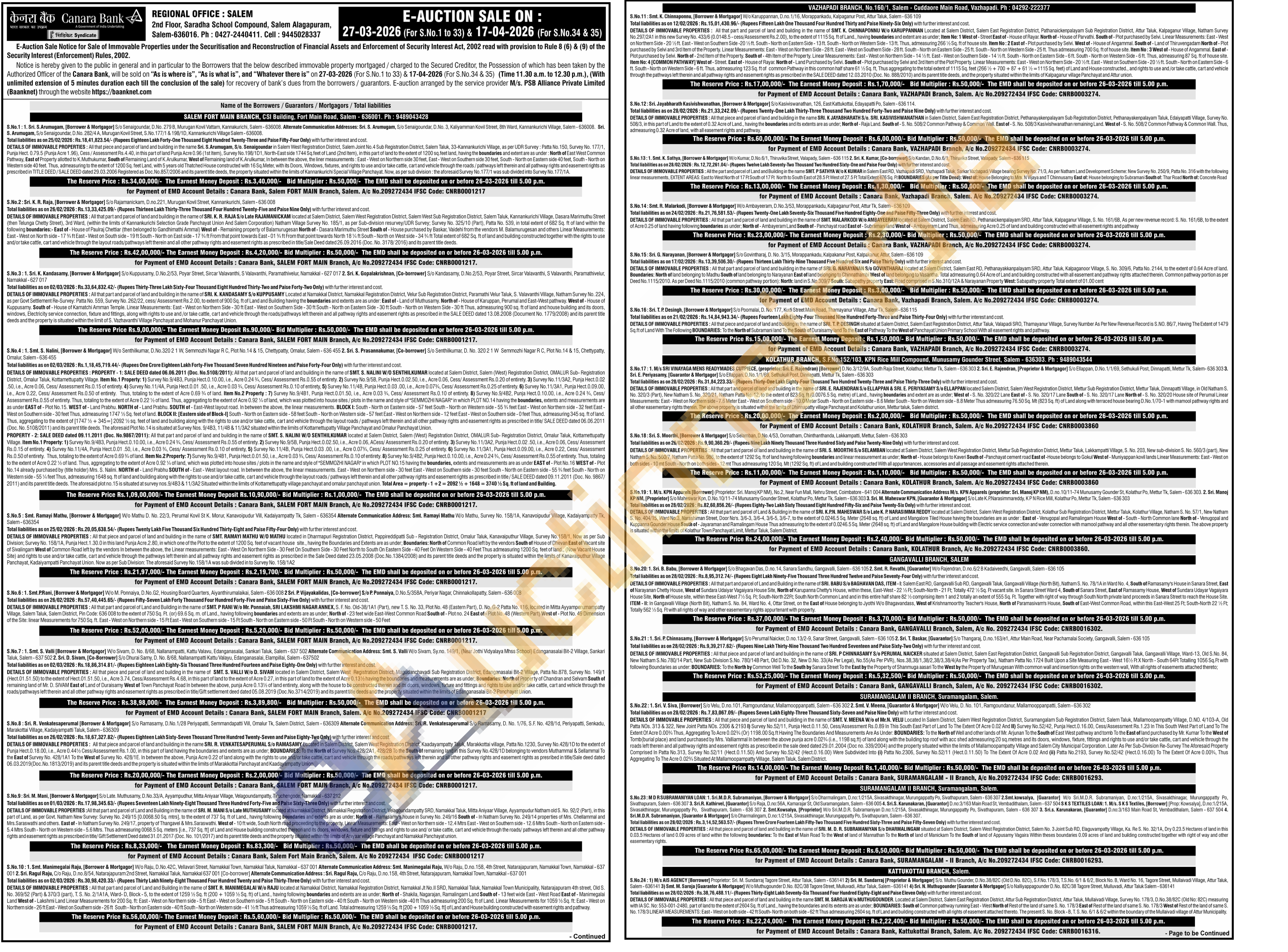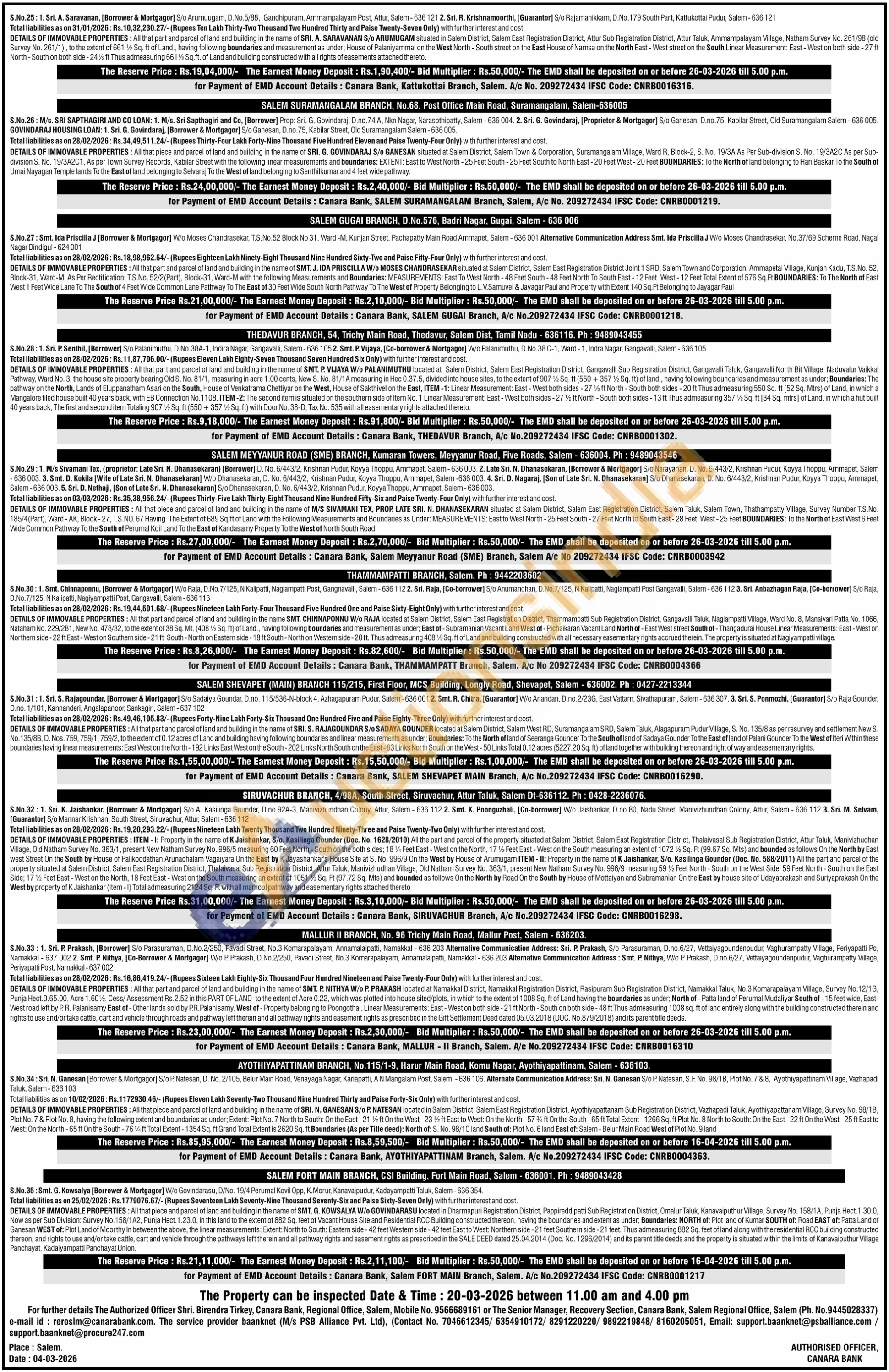 DETAILS OF IMMOVABLE PROPERTIES: All that part and parcel of land and building in the name of SRI, K. R. RAJA S/o Late RAJAMANICKAM located at Salem District, Salem West Registration District, Salem West Sub Registration District, Salem Taluk, Kannankurichi Village, Dasara Marimuthu Street (then Telunga Chetty Street), 3rd Ward, (within the limits of Kannankurichi Selection Grade Panchayat Union And Salem Corporation) Natham Village Survey No. 185/1, as per Sub-division resurvey/UDR Survey; Survey No. 325/10 (Part), Patta No. 539, in total extent of 682 Sq. ft of land within the following boundaries:-East of House of Paulraj Chettiar (then belonged to Gandhimathi Ammal) West of-Remaining property of Balamurugesan North of - Dasara Marimuthu Street South of House purchased by Baskar, Vaidehi from the vendors M. Balamurugesan and others Linear Measurements: East-West on North side-17% ft East-West on South side-19 ft South-North on East side-17% ft From that point towards East-0114 ft From that point towards North 18% ft South-North on West side-34% ft Total extent of 682 Sq. ft of land and building constructed together with the rights to use and/or take cattle, cart and vehicle through the layout roads/pathways left therein and all other pathway rights and easement rights as prescribed in title/Sale Deed dated 26.09.2016 (Doc. No. 3178/2016) and its parent title deeds.