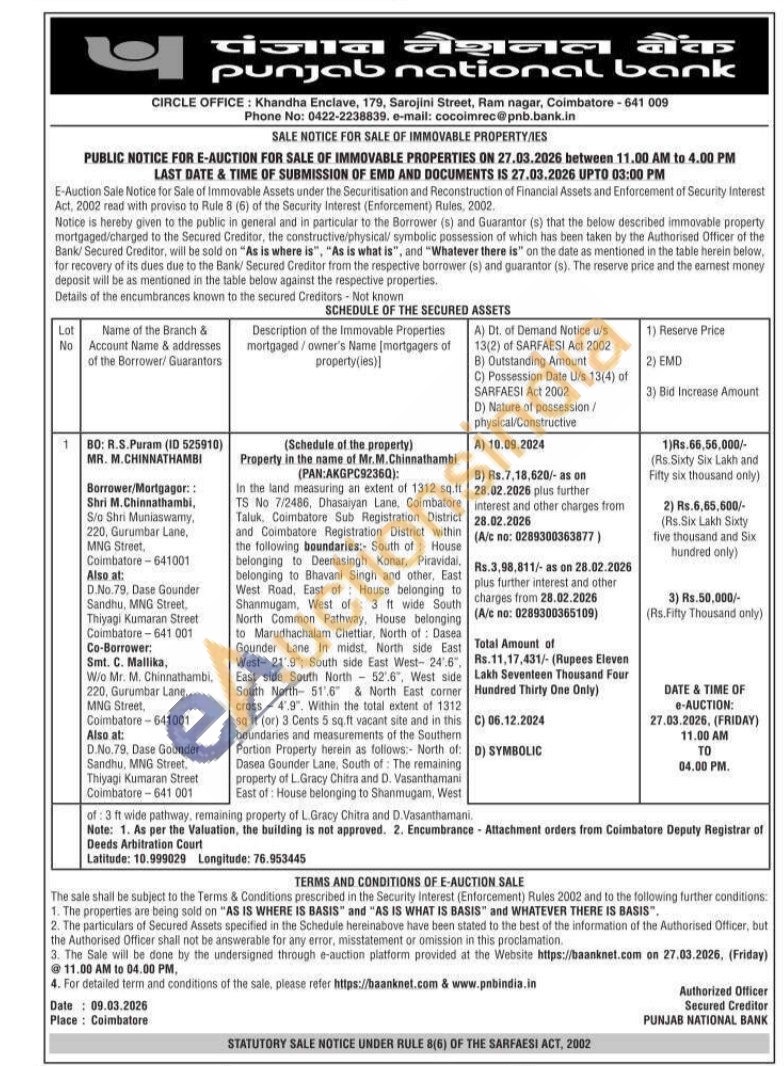 EM of all those part and parcel of 1.62 ares (4.00 cents) of land and residential building which comprised in Re. Sy. No.27/1 in Block No.209 of Varkala Village, Varkala Taluk, Thiruvananthapuram District in the name of Mr.Muhammed Rafi. Boundaries: North: Properties of Anzar and Pathway, South: Property of Sheeja. East: Properties of Laila Beegum. West: Property of Sheeja (formerly Juberia).