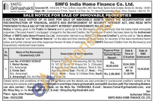 Naveen Kumar Tomar, on his Mob. No. 7042853583, E-mail: Naveen.Tomar@grihashakti.com, and Mr. Niloy Dey, on his Mob. 8655619157, E-mail: Niloy Dey@grihashakti.com