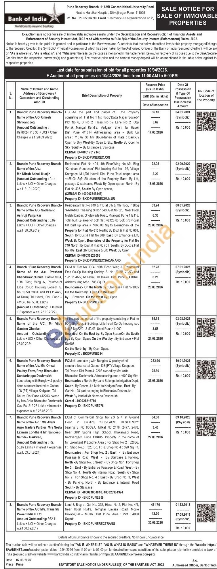 EQM of Land along with Bunglow & poultry shed structure located at Gat no 108 (PT) Village Kedgaon, Tal Daund Dist Pune 412203 owned by Mrs Anita Bhanudas Deshmukh. Admeasuring area: 4000 Sq Mtrs Boundaries: North: By Land Belongs to irigation Dept, South: By Deshmukh Mala to Kedgon Road, East: By Gat No 108 part belonging to Bhanudas Deshmukh, West: By land of Mr Namdeo Deshmukh Cersai-400021216789 Property ID-BKIDPUNE276