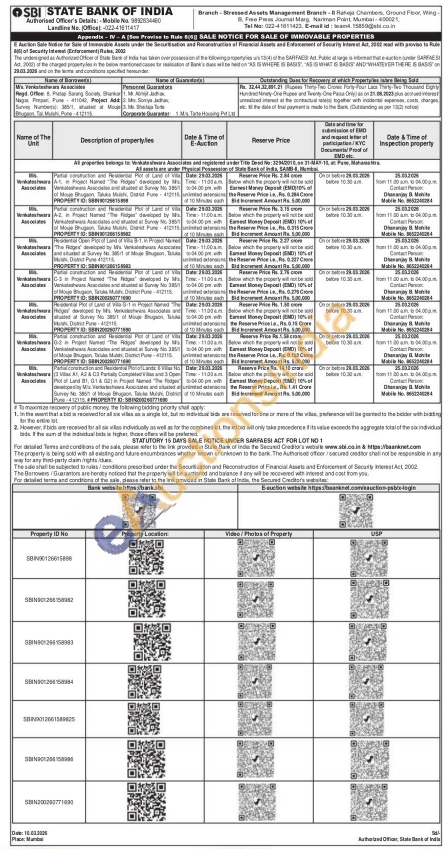 Partial construction and Residential Plot of Land of Villa C-3 in Project Named "The Ridges" developed by Mis. Venkateshwara Associates and situated at Survey No. 385/1 of Mouje Bhugaon, Taluka Mulshi, District Pune-412115.