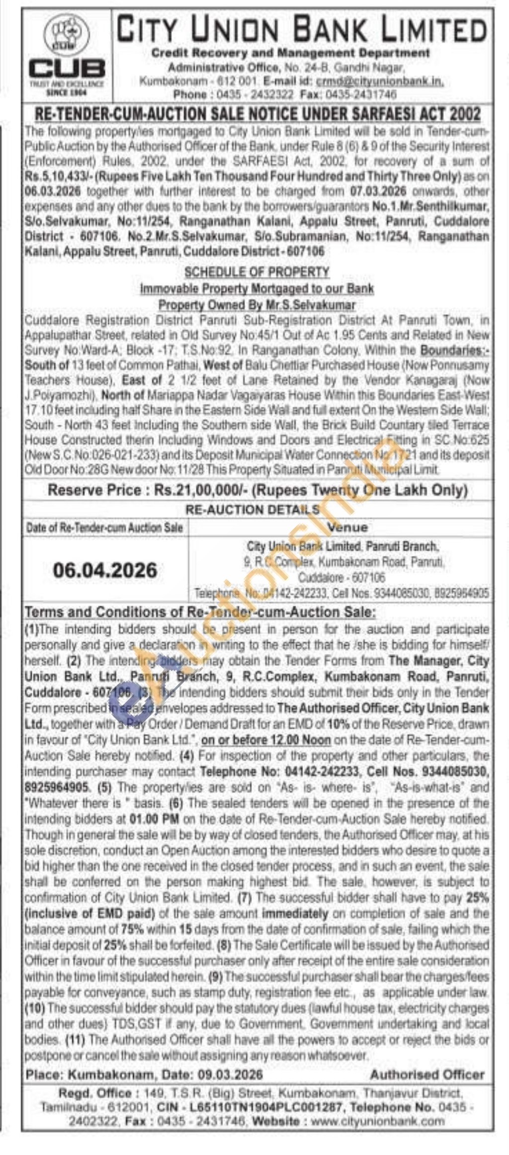 Cuddalore Registration District Panruti Sub-Registration District At Panruti Town, in Appalupathar Street, related in Old Survey No:45/1 Out of Ac 1.95 Cents and Related in New Survey No Ward-A, Block-17. T.S. No:92. In Ranganathan Colony, Within the Boundaries: South of 13 feet of Common Pathai, West of Balu Chettiar Purchased House (Now Ponnusamy Teachers House), East of 2 1/2 feet of Lane Retained by the Vendor Kanagaraj (Now JPolyamozhi), North of Mariappa Nadar Vagaiyaras House Within this Boundaries East-West 17.10 feet including half Share in the Eastern Side Wall and full extent On the Western Side Wall: South-North 43 feet Including the Southern side Wall, the Brick Build Countary tiled Terrace House Constructed therin Including Windows and Doors and Electrical Fitting in SC. No: 625 (New S.C.No 026-021-233) and its Deposit Municipal Water Connection No: 1721 and its deposit Old Door No:28G New door No: 11/28 This Property Situated in Panruti Municipal Limit
