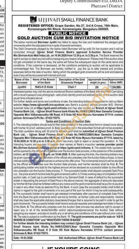 Ujjivan Small Finance Bank Gold Auctions Auction in Bengaluru