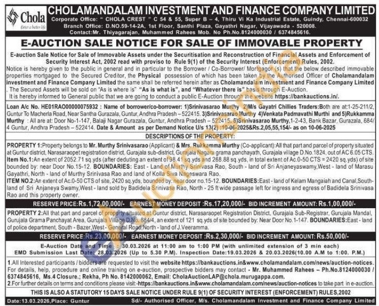 DESCRIPTIONS OF THE PROPERTY: PROPERTY 2 : All that part and parcel of property situated at Guntur district, Narasaraopet Registration District, Gurajala Sub-Registrar, Gurujala Mandal, Gurujala Grama Panchayat Area, Gurujala Village D.No. 684/4, an extent of 121 sq yds of site bounded by: Near Door No. 1-147, BOUNDARIES:East-land of police department, South-Bazer, West-General Road, North-land of J. Veeramma