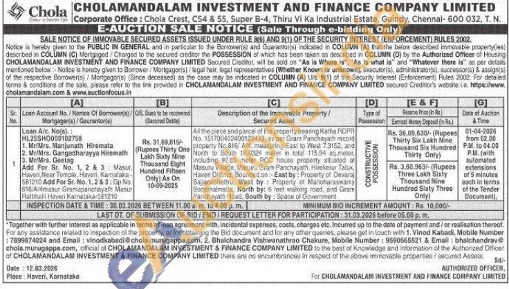 All the piece and parcel of the property beanng Katha RDPA No. 151700402400122433, as per Gram Panchayath record property No.816/ A/4, measuring East to West 7.3152, and North to South 16.0324 meter in total 115.94 meter, including 97.83 meter ACC house property situated of Masuru Village, Masuru Gram Panchayath, Hirokerur Taluk, Haveri District, Bounded on East by: Property of Devaraj Saganashettru, West by Property of Manoharaswamy Boodihalmatta. North by: 6 leet walking road, and Gram Parichayath Road, South by: Space of Government