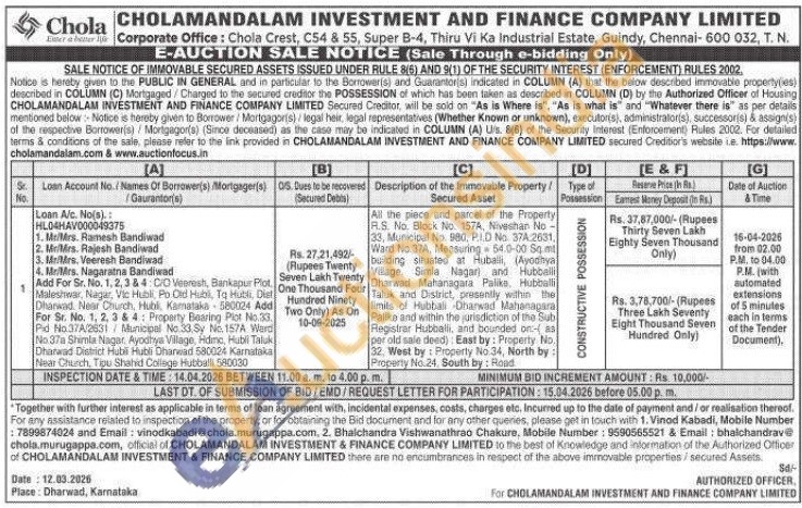 All the piece end parcel of the Property R.S. No Block No. 1574, Niveshan No-33, Municipal No. 980, P.1.0 No. 374 2631, Ward No.37A, Measuring 54.0-00 Sqmt buiding situated at Huballi, (Avodaya Village. Simla Nagari and Hubballi Dharwad Mahanagara Palike. Hubballi Taluk and District, presently within the limits of Hubbali Dharwad Mahanagara Palike and within the jurisdiction of the Sub Registrar Hubballi, and bounded on as per old sale deed): East by: Property No. 32, West by: Property No 34, North by: Property No.24. South by: Road