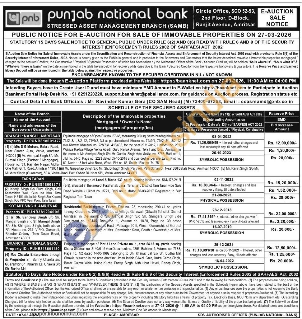 Equitable mortgage of Land 5 Marla 139 sq. ft. bearing Khasra no. 564/175/2/1/1 (2-9), situated in the area of Fatehchak Jarai, Tehsil and District Tam Taran vide Sale Deed Wasika / Likhat no. 3721, Bahi no. 1 dated 30-03-2017 Registered in Sub Registrar Tam Taran