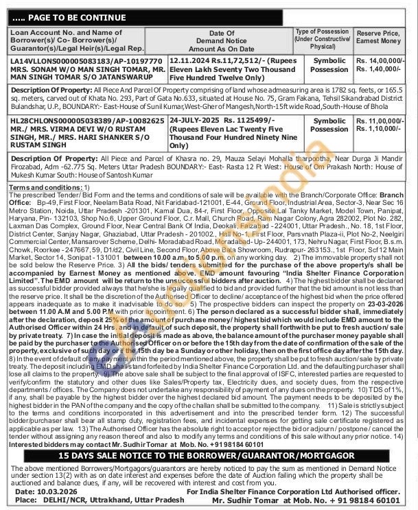 Description Of Property: All Piece And Parcel Of Shop No. Ug 255, Rishi Plaza, Mohalla Har-sahay Khidki Ward No. 20, Kasba Samsabad, Teh. Fatehabad Dist. Agra Up Measuring 12.55 Sq Mts. Boundary:- East- Property Of Hariom, West- 10 Feet Wide Road, North-Shop No-Ug-254, South-shop No-Ug-256