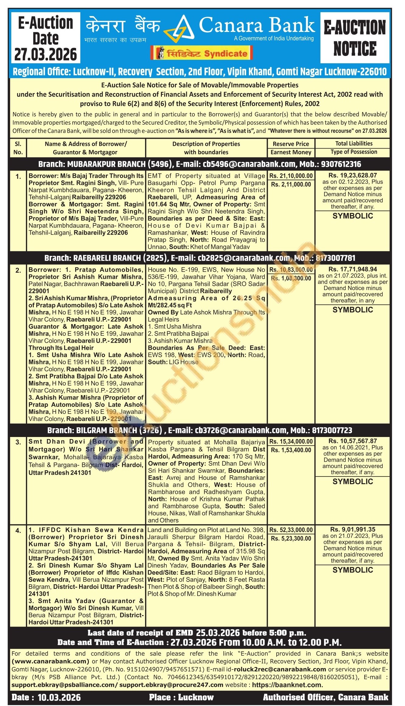 EMT of Property situated at Village Basugarhi Opp- Petrol Pump Pargana Kheeron Tehsil Lalganj And District Raebareli, UP. Admeasuring Area of 101.64 Sq Mtr. Owner of Property: Smt Ragini Singh Wio Shri Neetendra Singh, Boundaries as per Deed & Site: East: House of Devi Kumar Bajpai & Ramashankar, West: House of Ravindra Pratap Singh, North: Road Prayagraj to Unnao, South: Khet of Mangal Yadav