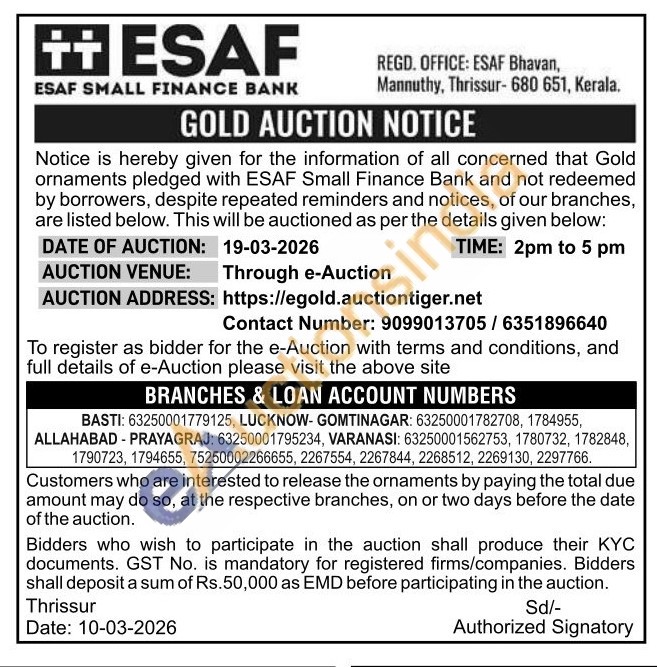 ESAF SMALL FINANCE BANK Gold Auctions Auction in Thrissur
