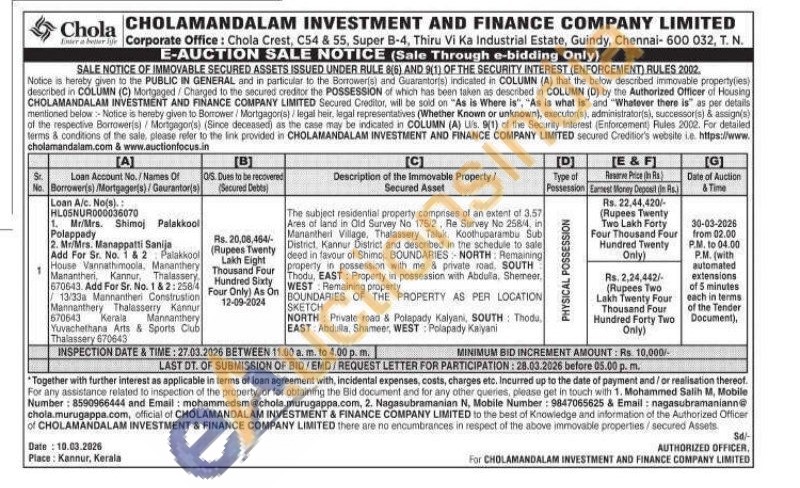 The subject residential property comprises of an extent of 3.57 Ares of land in Old Survey No 175/2, Re Survey No 258/4, in Manantheri Village. Thalassery Taluk, Koothuparambu Sub District, Kannur District and described in the schedule to sale deed in favour of Shimoj BOUNDARIES NORTH: Remaining property in possession with me & private road, SOUTH Thodu, EAST: Property in possession with Abdulla. Shermeer. WEST Remaining property BOUNDARIES OF THE PROPERTY AS PER LOCATION SKETCH NORTH Private road & Polapady Kalyani, SOUTH: Thodu EAST Abdulla, Shameer, WEST: Polapady Kalyani
