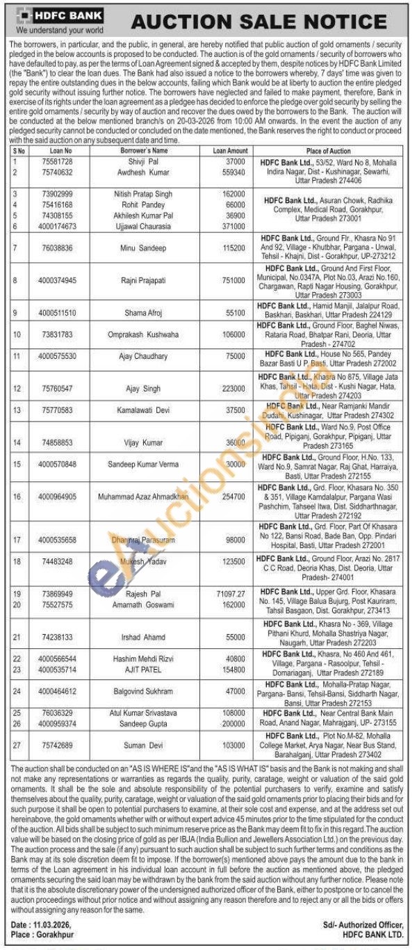 HDFC Bank Gold Auctions Auction in Gorakhpur
