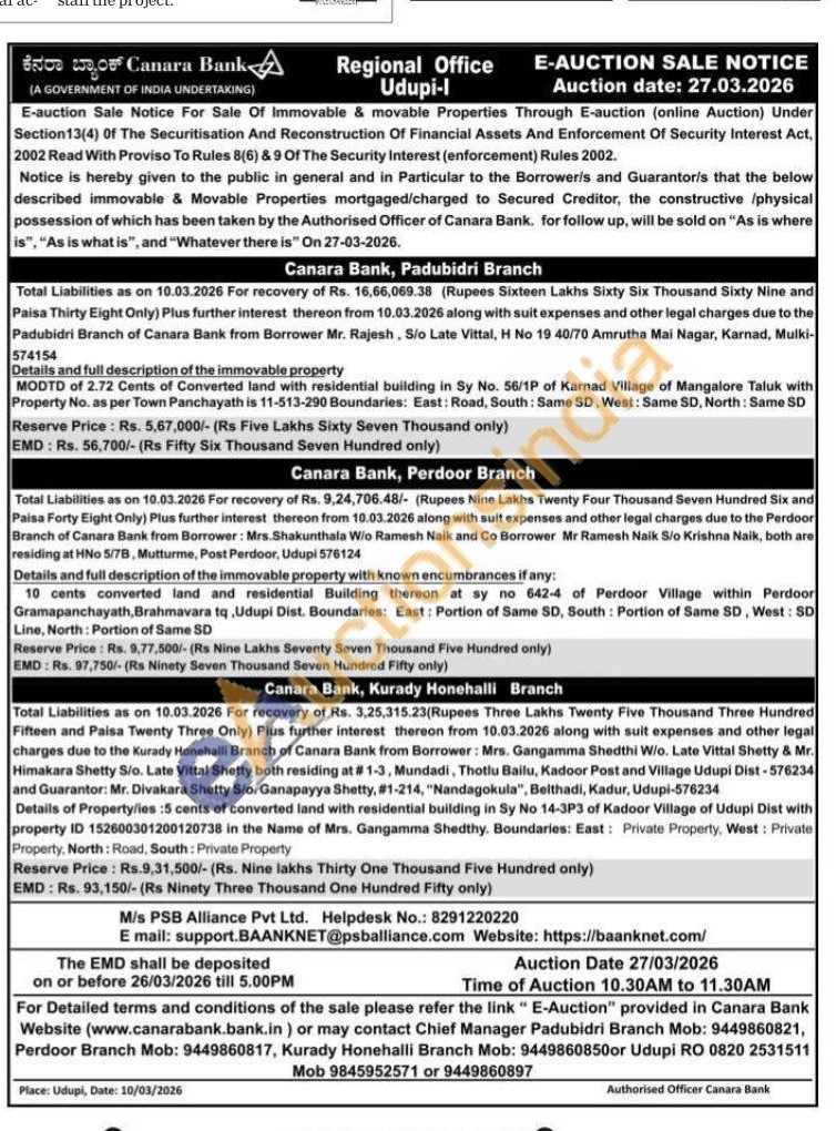 contact Chief Manager Padubidri Branch Mob: 9449860821, Perdoor Branch Mob: 9449860817, Kurady Honehalli Branch Mob: 9449860850or Udupi RO 0820 2531511,Mob 9845952571 oг 9449860897