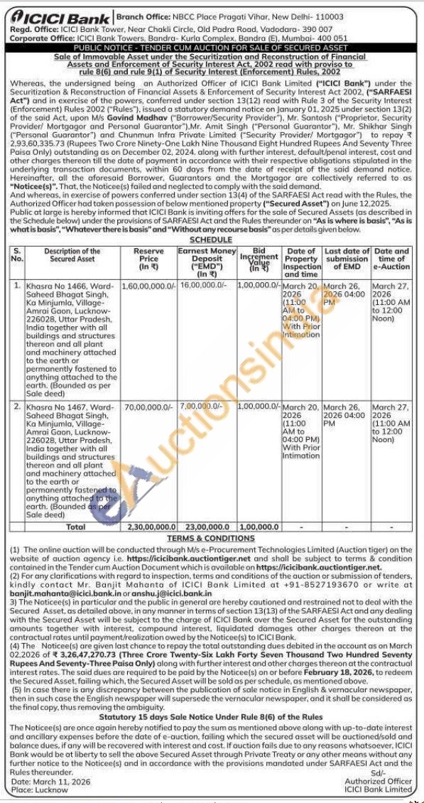 Khasra No 1467. Ward-Saheed Bhagat Singh, Ka Minjumla, Village-Amrai Gaon, Lucknow-226028, Uttar Pradesh, India together with all buildings and structures thereon and all plant and machinery attached to the earth or permanently fastened to anything attached to the earth. (Bounded as per Sale deed)