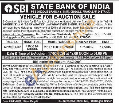 REG No. AP39BE 6587 MAKE/FUEL FIGO 1.5 DIESEL MODEL/COLOUR 2019/OXFORD WHITE