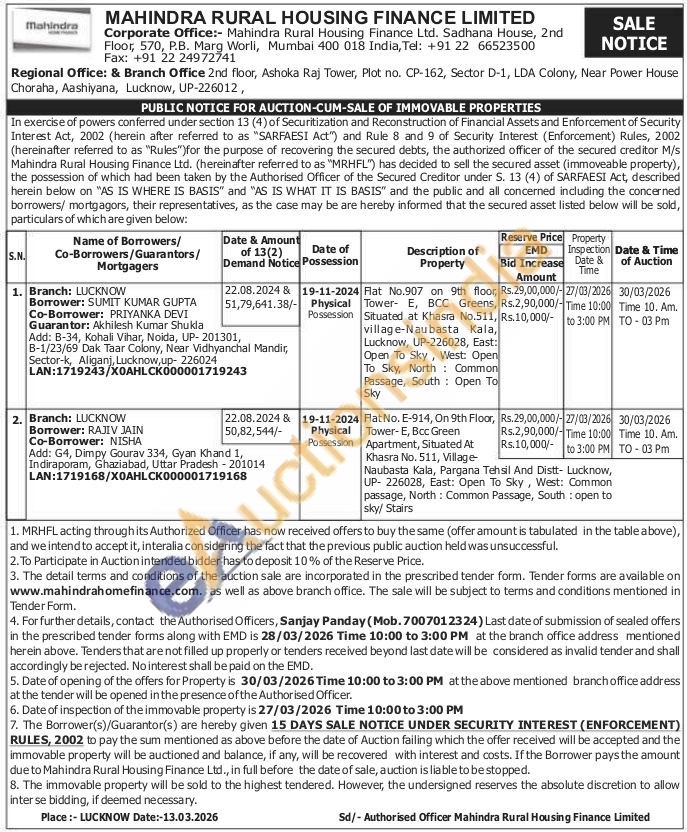 Authorised Officers, Sanjay Panday (Mobile No : 7007012324)