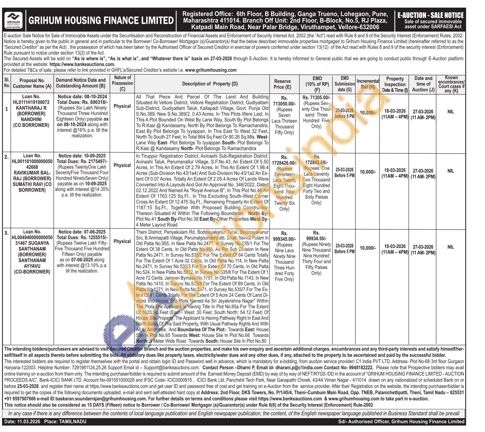 Theni District, Periyakulam Rd, Bodinayakanur Taluk, Bodinayakanur Sro, B. Ammapatti Village, Perumalgoundenpatti, South Sevval Pulam In Old Patta No.955. In New Patta No.2471, In Survey No.535/1 For The Extent Of 38 Cents. In Old Patta No.955, As Per Sub Division In New Patta No.2471, In Survey No.535/2 For The Extent Of 64 Cents Totally For The Extent Of 1 Acre 02 Cents, In Old Patta No.114, In New Patta No.2471, In Survey No.535/3 For The Extent Of 70 Cents, In Old Patta No.524, In New Patta No.5812. In Survey No.535/6 For The Extent Of 1 Acre 72 Cents, Jameen Bymass No. 1757, In Old Patta No. 1143. In New Patta No.1410, In Survey No.535/8 For The Extent Of 89 Cents, In Old Patta No.1271, In New Patta No.2471, In Survey No.535/7 For The Ex-tent Of 91 Cents Totally For The Extent Of 5 Acre 24 Cents Of Land Di-vided Into House Site Plots Named As Sri Jeyakrishna Nagar Within The Plots The Applicant is Having Title In Plot No.65a For The Extent Of 1623 Sq. Feet (East-West: 30 Feet; South North: 54.12 Feet) Of House Site Property, The Applicant Is Having Pathway Right in East And North Sides Of The Said Property, With Usual Pathway Rights And With All Its Amenities. And Boundaries Of The Plot:-Towards East: House Site in Plot No.65 Towards West: House Site In Plot No.66 Towards North: 9 Meter Wide Roac Towards South: House Site In Plot No.80