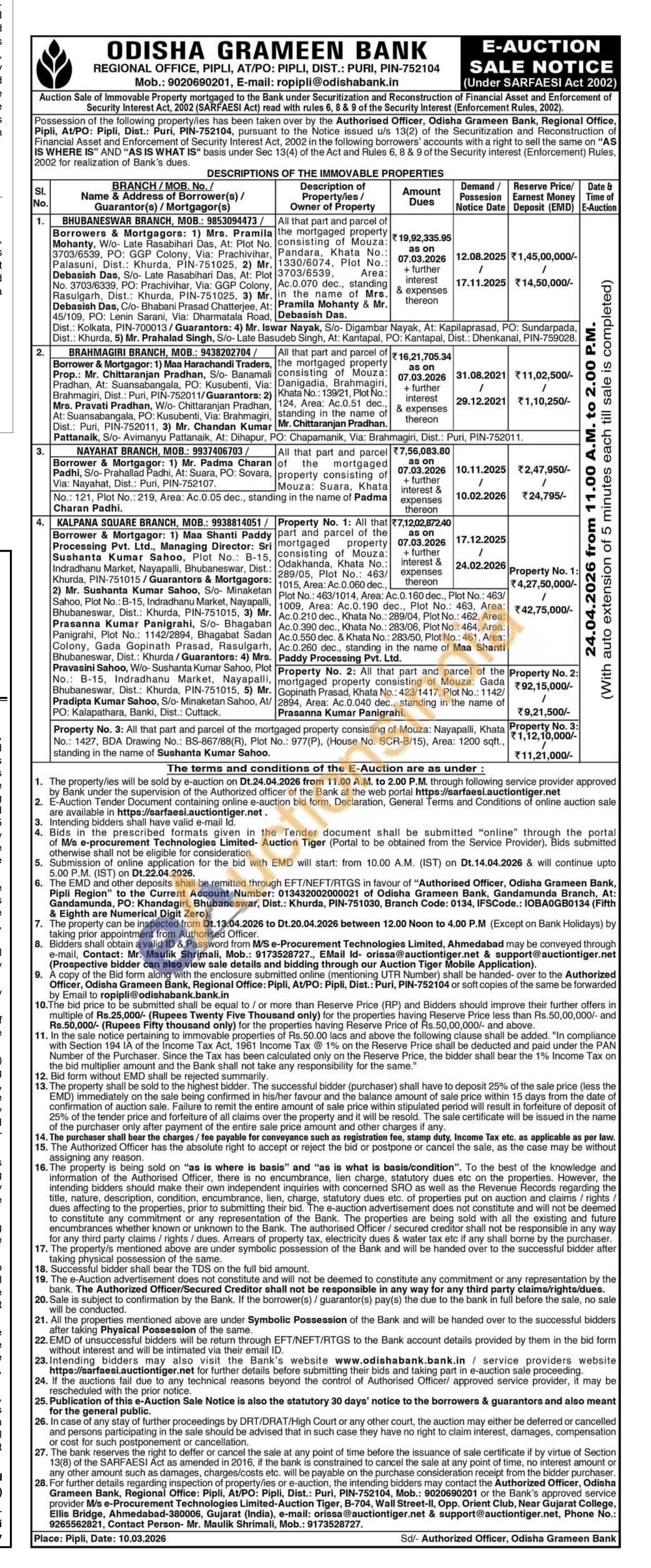 All that part and parcel of the mortgaged property consisting of Mouza: Danigadia, Brahmagiri, Khata No.: 139/21, Plot No.: 124, Area: Ac.0.51 dec., standing in the name of Mr. Chittaranjan Pradhan.