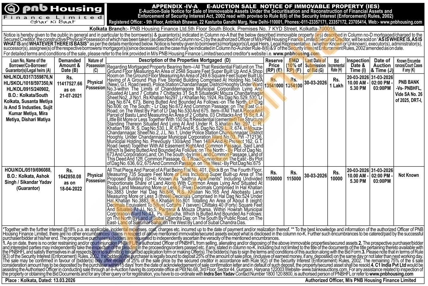 Regarding Mortgaged Property Bearing Item-iAll Item-i All That Residential Flat/unit on The Ground Floor Measuring An Area of 2548 Square Feet Super Built Up And A Shop Room on The Ground Floor Measuring An Area of 249.6 Square Feet Super Built Up Having of A Ground Plus Five Storied Building Comprised At Holding No. 148/A Having of A Ground Plus Five Storied Building Comprised At (New), G.t. Road (west), Police Station Chandannagar, Hooghly Under No.3-within The Limits of Chanddernagore Municipal Corporation Lying And Situated At Land 7 Cottahs 7 Chittacks 31 Sq.ft SituatedAt Mouza Chandannagar Sheet No2, JI No1, Rs Khatian No297, Lr Khatian No. 1924, Rs Dag No.529, 530, Lr Dag No.674,6 674, 673, Being Butted And Bounded As Follows:-on The North. Lr Dag No.606; on The South: - Lr Dag No.672 And Common Passage; on The East G.T Road; on The West By Part of Lr Dag Dag No.530 No.530 And And 675. Item-lAll Item-II'All T That A Pi Piece And Parcel of Bastu Land Measuring An Area of 2 Cottahs, 03 Chittacks And 15 Sq.ft. A Little Bit More or Less Together With 150 Sq.ft Residential (cemented) Tile Structure Standing Thereon Situated And Lying At And Lying At And Under R. R. S.khatian No. 297. 297, L. R. Khatian 199, R. S. Dag No.530, L.R. 673 And R. S. Dag No.529, L. R. 674, In Mouza-Chandannagar, Sheet No.2, J.L. No.1, Under Police Station Chandannagar, District Hooghly, Under Chandannagar Municipal Corporation Ward No.03, Pin-712136, Municipal Holding No. Previously 130/aAnd Then 148/AAnd At Present 162, G.T. Road (west) Together With All Easement Right And Common Passage, Said Land Which Is Being Butted And Bounded As Follows: on The North: - By Plot of Dag No. 673 And Corporation Land; On The South:-by Inter Land Common Passage, Land of This Deed And 12ft. Common Passage, G. TRoad Connector; on The East:-By Plot of Dag No. 636, 6/2, 675 And Common Passage. on The West:-By Plot Dag No.675