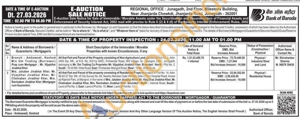 All that Part and Parcel of the property consisting of Residential Property siluated at Plot No. 14, Adm. 86-62-27 Sqr. Mtr. of City Survey No. 69. Nearby Mandavi Gate Western Side of Civil Hospital Road, known as Rajmoti Park, at Mangrol, in the name of Mrs. Jaluben Jivabhai Kher, Mr. Vijaybhai Jivabhai Kher, Mr. Chetnaben Jivabhai Kher, Mrs. Ravinaben Jivabhai Kher. Bounded: North Intermal Road, South: Land of Plot No. 3, East: Land of Plot No. 15, West: Land of Plot No. 13