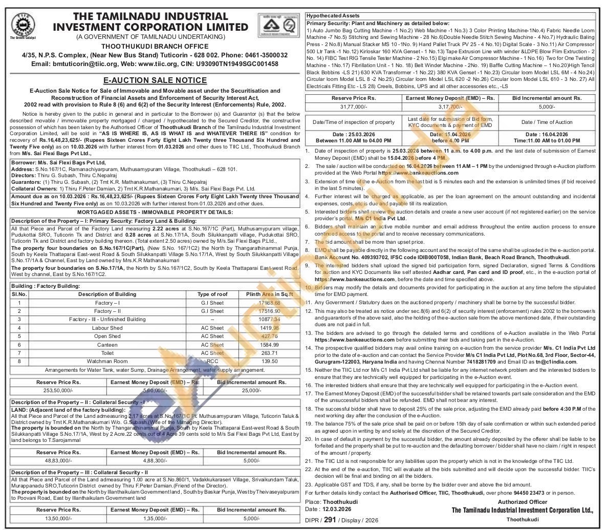 Authorised Officer TIIC Thoothukudi over phone No : 9445023473