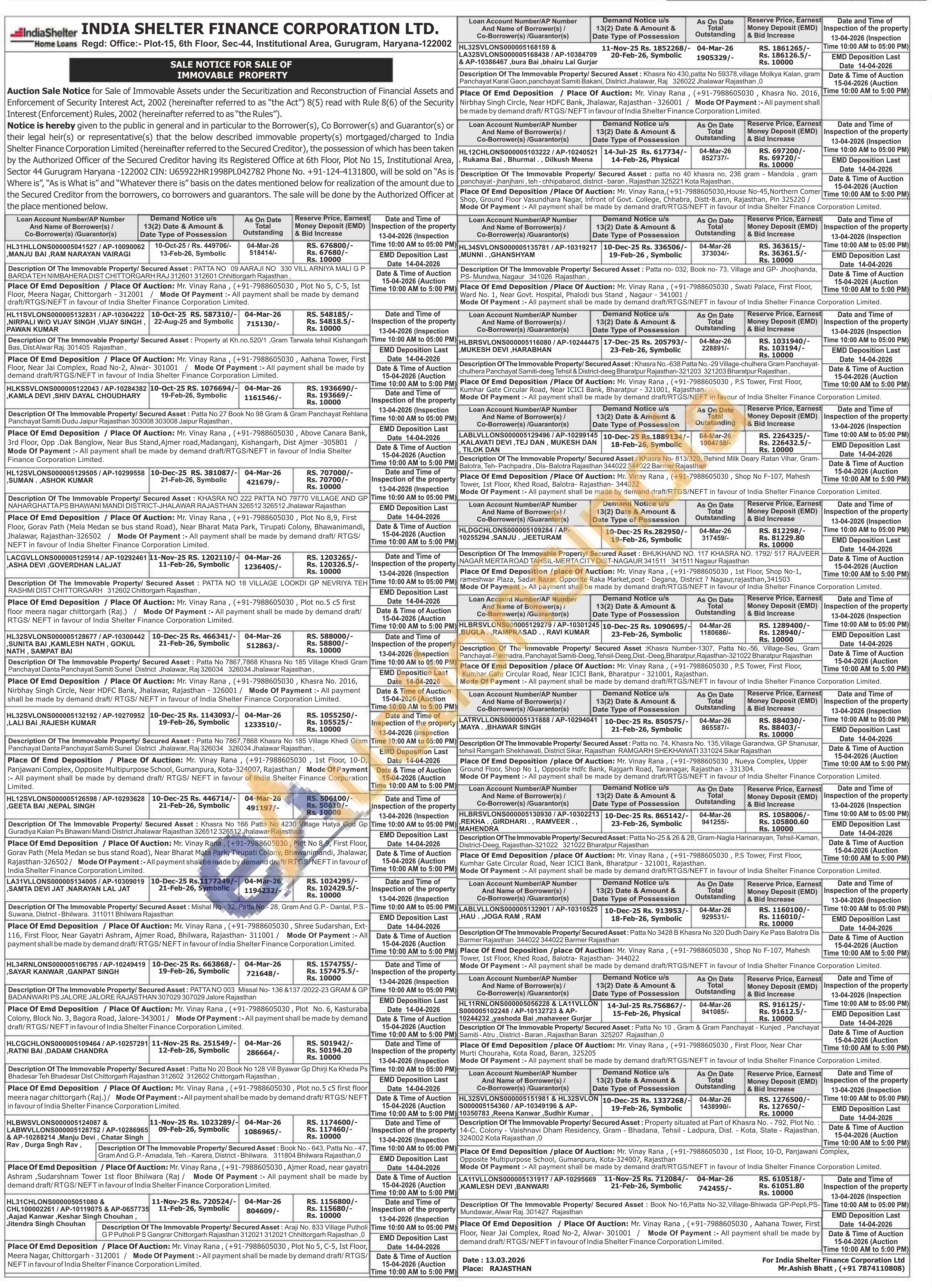 Description Of The Immovable Property/ Secured Asset: PATTA NO 09 AARAJI NO 330 VILL ARNIYA MALI G P BARDA TEH NIMBAHERA DIST CHITTORGARH RAJ 312601 312601 Chhittorgarh Rajasthan,
