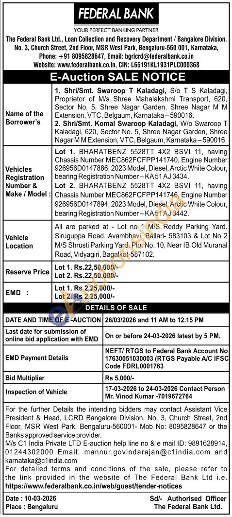 Contact no 8095828647, Email: bgricrd@federalbank.co.in