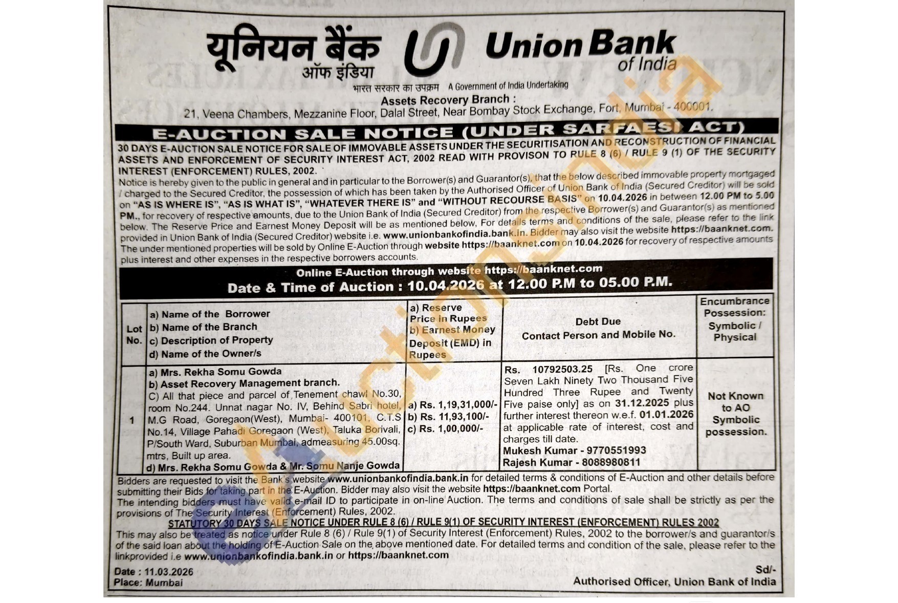 All that piece and parcel of Tenement chawl No.30, room No.244. Unnat nagar No. IV, Behind Sabri hotel, M.G Road, Goregaon (West), Mumbai- 400101, C.T.S No.14, Village Pahadi Goregaon (West), Taluka Borivali. P/South Ward, Suburban Mumbai, admeasuring 45.00sq. mtrs, Built up area