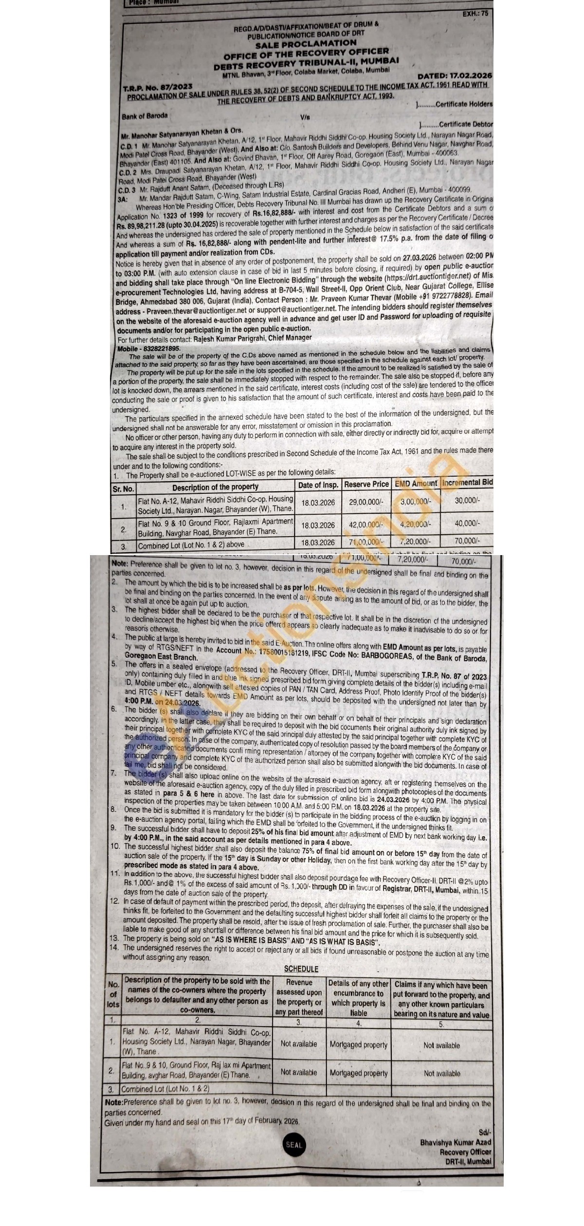 Flat No. A-12, Mahavir Riddhi Siddhi Co-op. Housing Society Ltd., Narayan. Nagar, Bhayander (W), Thane