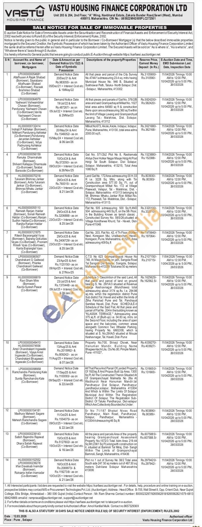 Contact Authorized officer: Amol Kantilal Mulik Contact no.9657329369