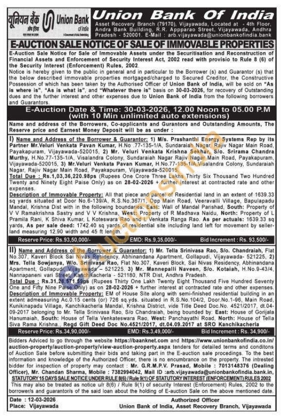Description of Immovable Property: EM of House Site along with semi-finished residential building in an extent admeasuring Ac.0.15 cents (or) 726 sq.yds. situated in R.S.No. 104/2, Door. No.1-96, Main Road, Kunikinapadu Village, Kanchikacherla Mandal, Krishna District, vide Title Deed Doc. No. 4521/2017, dt.04-09-2017 belonging to Mr. Tella Srinivasa Rao, Sio Chandraiah, being bounded by: East: House of Gorijala Hanumaiah, South: House of Tella Venkateswara Rao, West: Panchayathi Road, North: House of Tella Siva Rama Krishna., Regd Gift Deed Doc No.4521/2017, dt.04.09.2017 at SRO Kanchikacherla