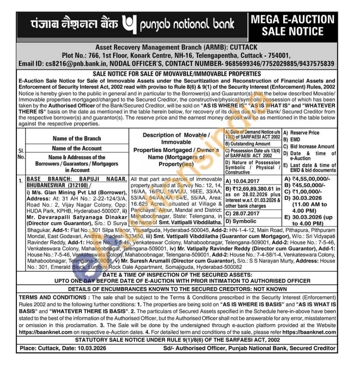 All that part and parcel of immovable property situated at Survey No.: 12, 14, 16/AA, 16/RU, 16/VUU, 16EE, 33/AA 53/AA, 54/ΑΑ/ΑΑ, 54/Ε, 55/AA, Area 16.625 Acres, situated at Village & Panchayat: Alipur, Mandal and District Mahaboobnagar, State: Telengana