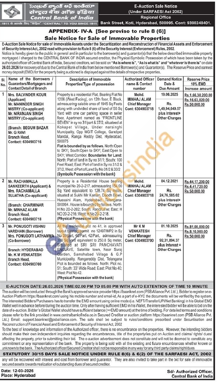 muncipal No 20-2-217, admeausning 154.00 Sq Yard equivalent to 128.74 Sq meter, situated at Sukhi Mir Kaman, Doodh Bowli, Hussaini Alam, Hyderabad, Telangana-500064, House is bounded by follows. North: Η No 20-2-202; South: Raod/Lane; East: H NO 20-2-216; West: H No 20-2-218. (Physical Possession with the bank) Property is a Residential House bearing
