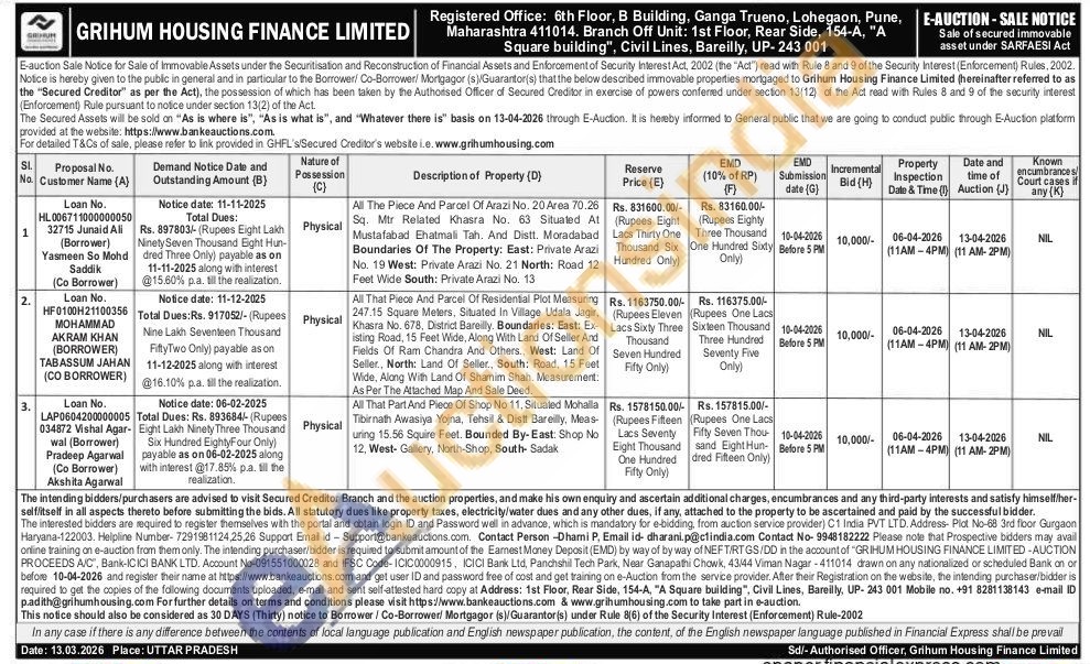 All That Part And Piece Of Shop No 11, Situated Mohalla Tibirnath Awasiya Yojna, Tehsil & Distt Bareilly, Meas-uring 15.56 Squire Feet. Bounded By-East: Shop No 12, West- Gallery, North-Shop, South- Sadak