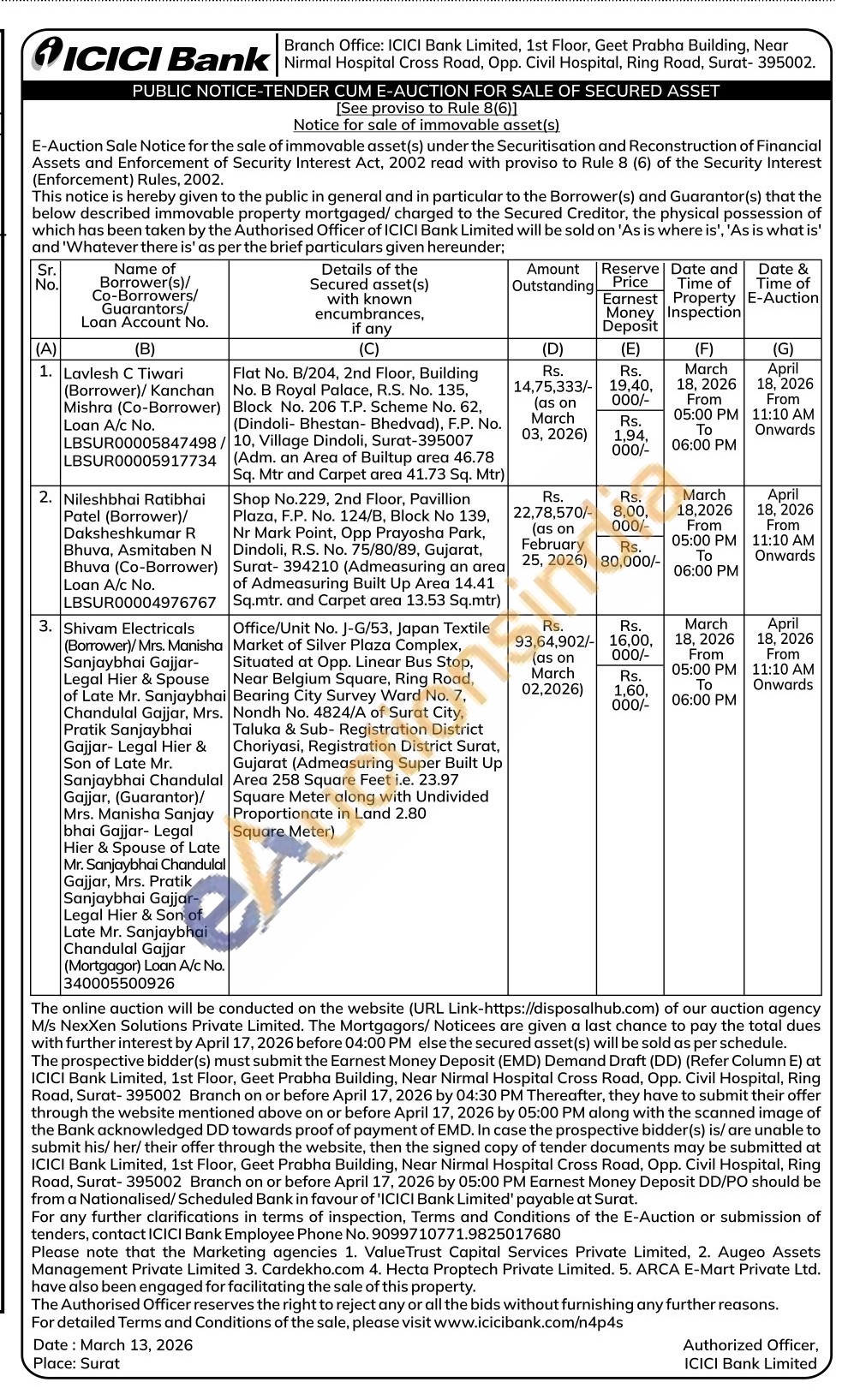 Flat No. B/204, 2nd Floor, Building No. B Royal Palace, R.S. No. 135, Block No. 206 T.P. Scheme No. 62, (Dindoli- Bhestan- Bhedvad), F.P. No. /10, Village Dindoli, Surat-395007 (Adm. an Area of Builtup area 46.78 Sq. Mtr and Carpet area 41.73 Sq. Mtr)