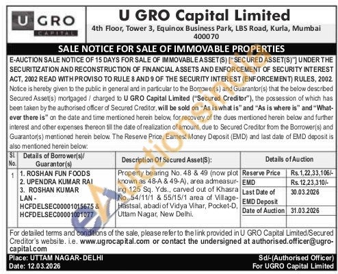 Property bearing No. 48 & 49 (now plot known as 48-A & 49-A), area admeasur-ing 125 Sq. Yds., carved out of Khasra No. 54/11/1 & 55/15/1 area of Village-Hastsal, abadi of Vidya Vihar, Pocket-D. Uttam Nagar, New Delhi,