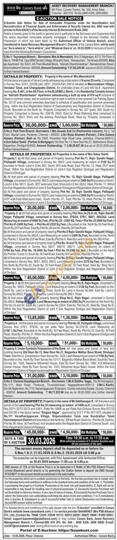 DETAILS OF PROPERTY: Property in the name of Mr. Sabthasagar K: All that piece and parcel of the Land bearing Plot No.35 measuring an extent of 3490 sq ft, comprised in Survey Nos. 537/1,537/2,537/3 and 538/1, Patta No. 16856 as per Patta Sub-Division Survey Nos 537/33 and 537/38 in the layout named "Singara Nagar", approved by DDTP No 257/1973, situated in No.111 Varadharajapuram Village, Sriperumbudur Taluk now Kundrathur Taluk Kancheepuram District and bounded on the North by: 30Feet Road, South by: Plot No 34, Eastby: Plot No 36, West 30 Feet Road. And situated within the Registration District of Chennal South and Sub-Registration District of Padappai