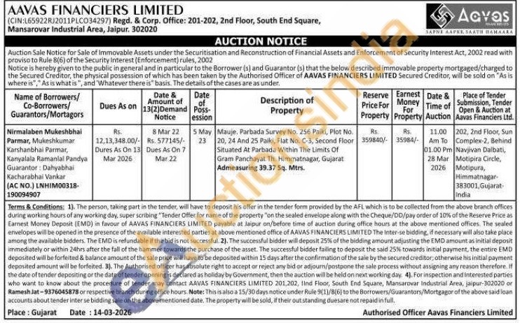 Mauje. Parbada Survey No. 256 Paiki, Plot No. 20, 24 And 25 Paiki, Flat No. C-3, Second Floor Situated At Parbada Within The Limits Of Gram Panchayat Th. Himmatnagar, Gujarat Admeasuring 39.37 5q. Mtrs