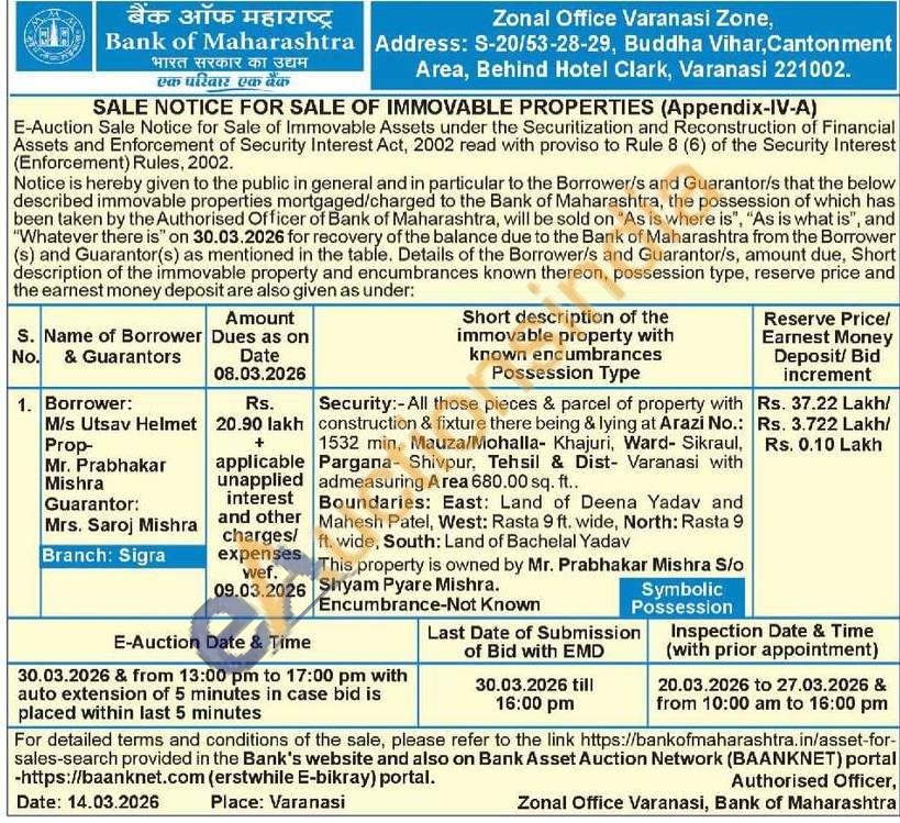 Security:-All those pieces & parcel of property with construction & fixture there being & lying at Arazi No.: 1532 min, Mauza/Mohalla- Khajuri, Ward-Sikraul, Pargana- Shivpur, Tehsil & Dist- Varanasi with admeasuring Area 680.00 sq. ft..